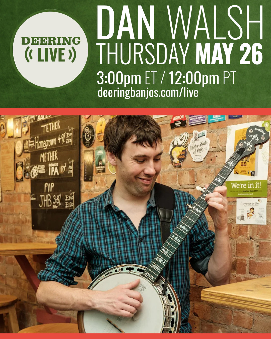 British clawhammer virtuoso Dan Walsh joins us on Deering Live to talk about his unique take on clawhammer playing, and whether clawhammer should be regarded as a technique or a genre. Dan is a long-time Deering artist and if you are not familiar with him, he has a fascinating approach to playing banjo. This episode will be well worth tuning in for!