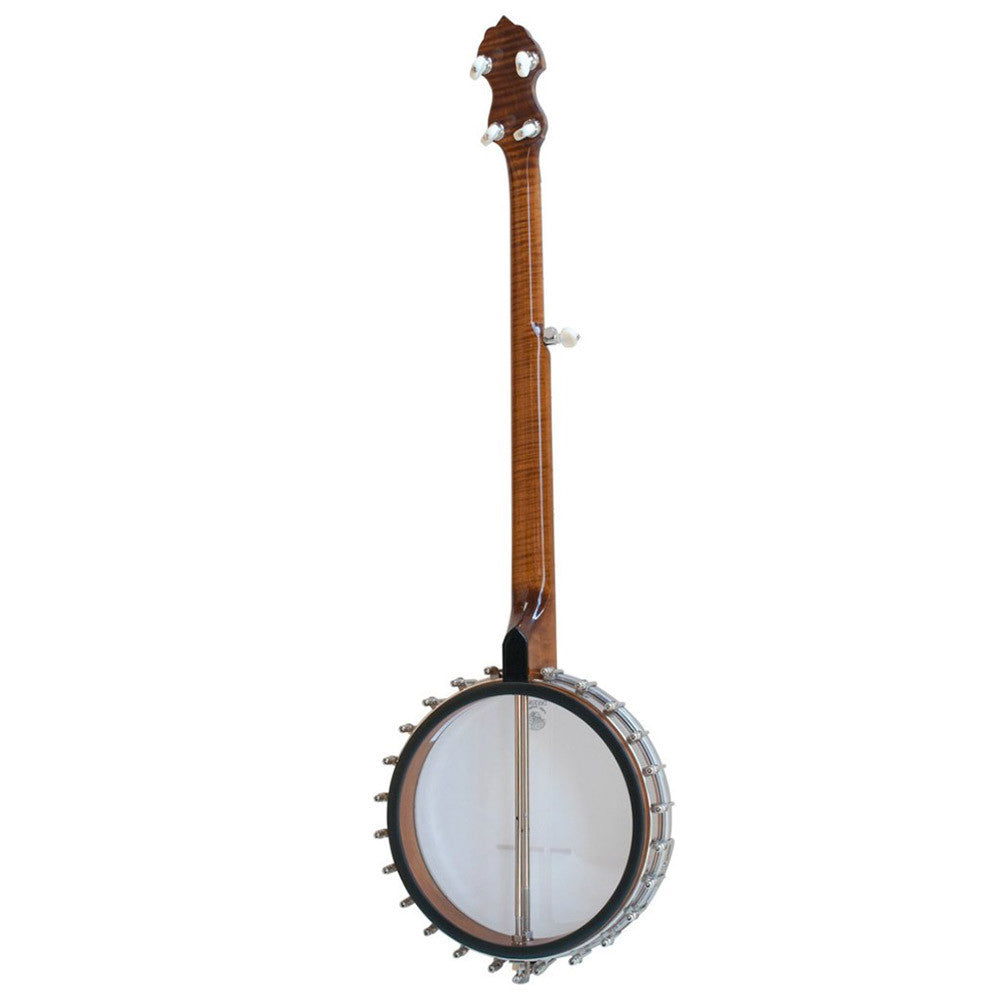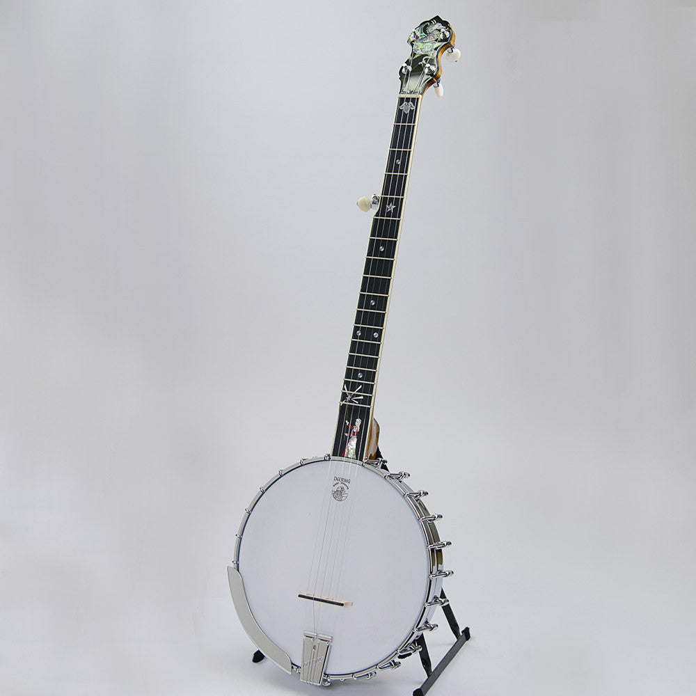 The precise Vega style 3-ply violin grade maple rim is hand fit with a genuine Vega Tubaphone tone ring, brass bracket band, and frosted top head to provide a clear tone across the entire range giving the professional player a deep bass with a bright treble and everything in between. Bearing the traditional frailing scoop favored by clawhammer players you can use this banjo to play any style you like. It is richly dynamic, accurate all the way up the neck, with a complete range of tone that is preferred by discerning professionals and collectors of fine instruments.