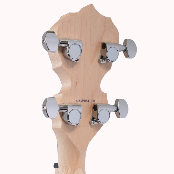 Five high quality geared tuning machines make tuning the Goodtime banjo easy, accurate and fun. Too many student banjos are cursed with poor quality tuners, so the students blame themselves for an out of tune banjo when it’s the tuner that is at fault.