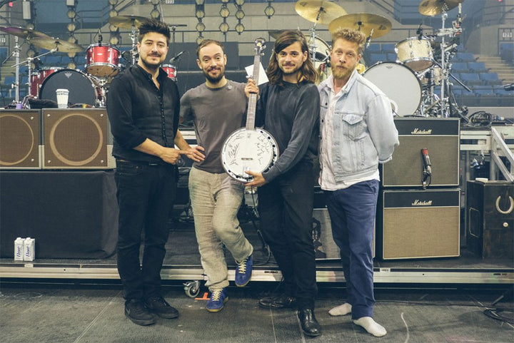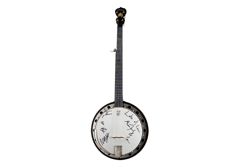 The drum head of the banjo is personally signed by Mumford & Sons with a personal message from the band.