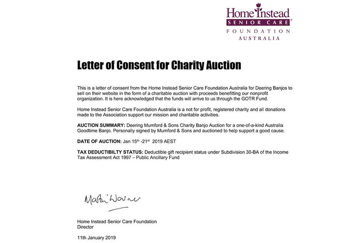 The Charity this auction will benefit is Home Instead Senior Care Foundation Established in 2014 in commemoration of Home Instead Senior Care Australia's 10th year of service. The Foundation raises funds for local community initiatives, groups, programs and research projects in support of: Alzheimer's disease & other dementia, Education & research, Health & Wellness, and Community Care enabling seniors to remain living in their community