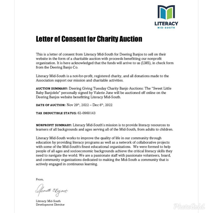 This collaboration was inspired by Valerie’s newly launched Children’s book “Somebody to Love”, the story of her banjolele. Her Giving Tuesday Banjolele will benefit is Literacy Mid South, who have the mission to provide literacy resources to learners of all backgrounds and ages. They serve all the Mid-South, from adults to children.