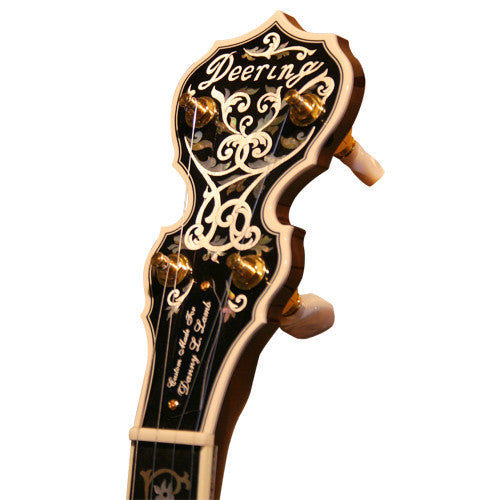 Tree of Life banjo is Greg Deerings modern intreptation of the old S.S. Stewart Tree of Life inlay pattern extended and embellished on the peghead to create a uniquely Deering look. It represents a celebration of the beauty and artistry of banjos of old combined with the improved construction techniques which give you a modern banjo that plays as great as it looks.